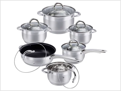 Наборы кастрюль из нержавеющей стали, пароварки, котелки, сковороды, соусники, кастрюли для супа и бульона, производитель кухонной посуды, популярный благодаря своему качеству, кредиту и инновациям.